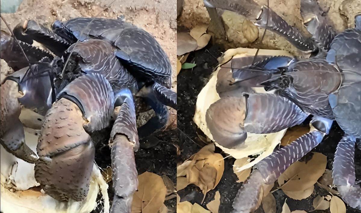 經過科學家們的簡單測試發現,椰子蟹的握力極強,最大夾緊力范圍在29.4~1765.2牛頓。