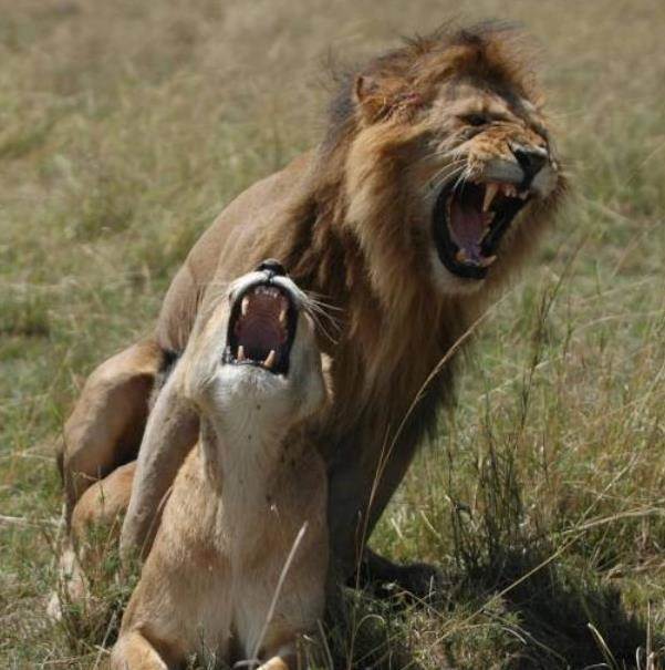 所以交配對于母獅而言沒有愉悅可言,而是痛苦不堪。當母獅感到疼痛時,會反擊雄獅,雄獅為了讓母獅安靜下來,會咬住對方的脖子,以防被母獅傷害。