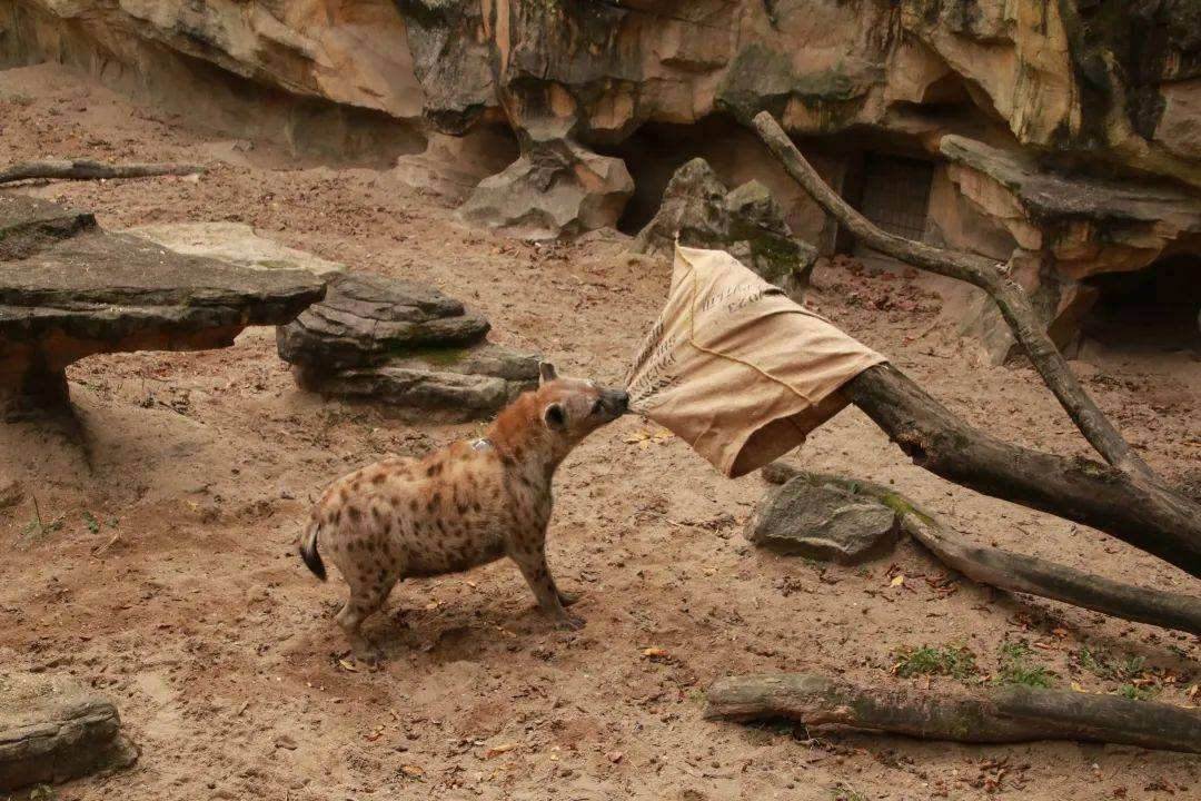 如果是一群斑鬣狗,那麼斑鬣狗的進食速度會非常快,它們在進食時不會顧及自己吃的是不是腸道,而是會盡可能把能吃的都吃進去。在吃的過程中,腸道會破裂,腸容物會被甩出來,但即便如此,腸道內表面也會附著較多的食物殘渣,這些殘渣會被斑鬣狗吞下肚子里。