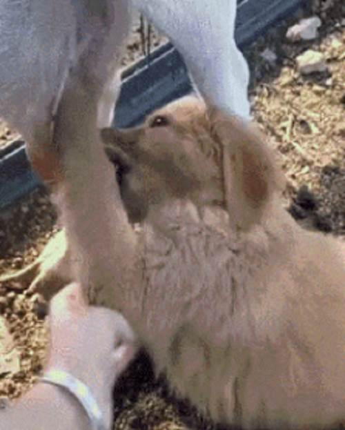 看得出小金毛真的是餓了,不然怎麼也會對這只母羊下口呢?