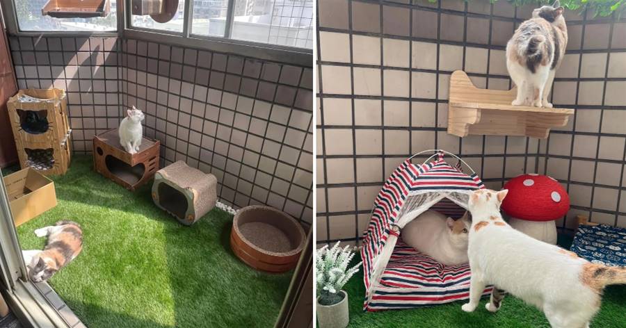 同時,為了讓它們也能感受在外時的自由,網友精心布置了陽台,讓它們在家也能享受自由自在的感覺~
