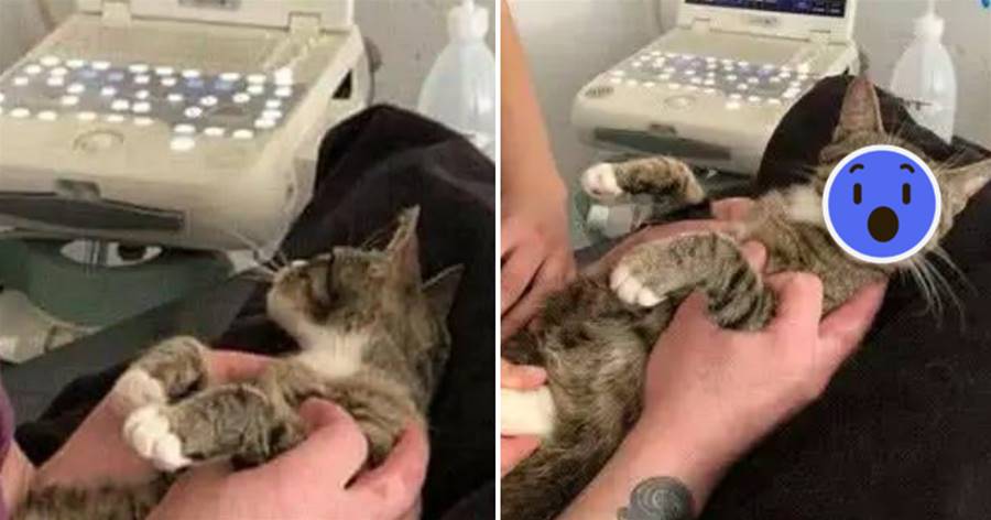但是這只貓咪竟然有一個特別大的驚喜送給收容所的工作人員!工作人員說這是一只1歲多的年輕母貓。就在收養它的沒幾天,發現貓咪的肚子一直在變大,而且速度很快。工作人員為了確保貓咪的安全,帶著貓咪做了超音波!