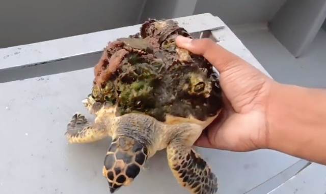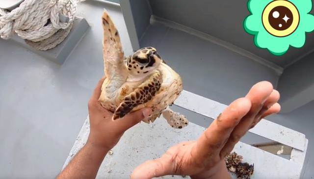 男子開船出海,在海上看到了一只找他尋求幫助的小海龜,一般的海洋生物看到有船過來了都會躲開一點,而它卻跟大船行駛過去推開的海浪抗衡,想要靠近船只。男子看到它一次次被海浪推開還不放棄都被它的毅力感動了,仔細一看發現它的外殼很不對勁,用漁網把它打撈上來之后發現它的外殼上長滿了藤壺,看來它剛才想要靠近船只是為了求救,真是一只聰明機靈的小海龜。
