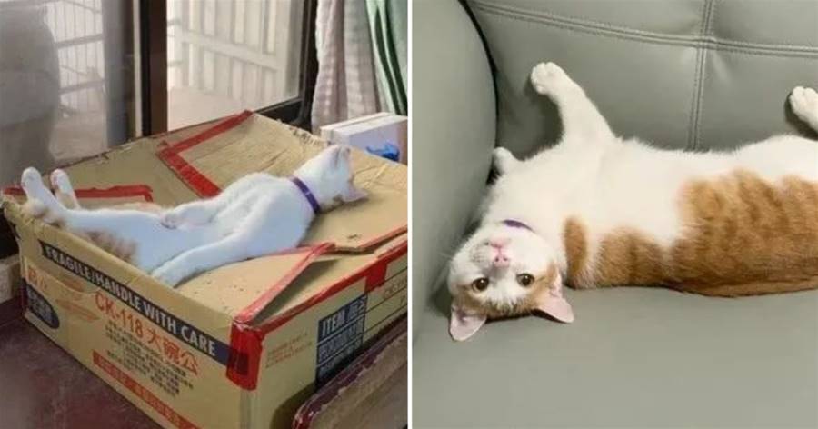 飼主表示,「那天下午它吃飽飯、玩累了,自己跑到箱子上躺著,我看到的時候就發現它躺成這樣在睡午覺。